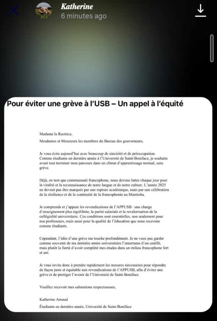 Je ne connais pas les états financiers de l’USB, mais si les fonds manquent, il est grand temps, comme le suggère fortement la lettre de Madame Roy-Wsiaki, que l’administration aille frapper à la porte du premier ministre, Wab Kinew, et du député de Saint-Boniface, Robert Loiselle. C?est certainement du devoir de l’administration d’être présente dans les corridors législatifs à l’heure où le gouvernement promeut un respect et un renouveau du bilinguisme : cela doit sûrement signifier une égalité en matière d’éducation et de conditions de travail.