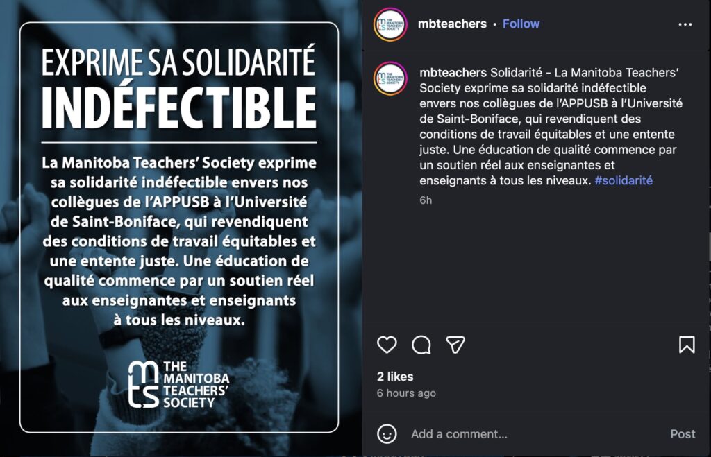 « If we have any interest in making Manitoba a truly bilingual province, supporting professors’ demands is not only just, but necessary. »